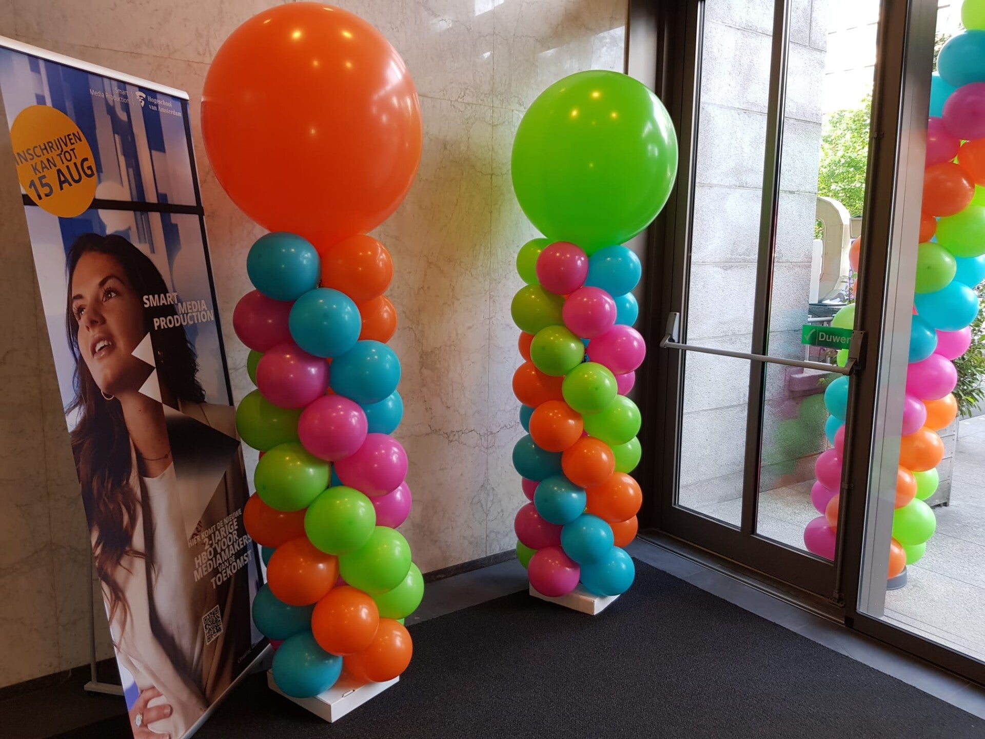 De pilaar is specifiek gemaakt voor indoor en outdoor gebruik, en zal binnen (indoor) minimaal een week mooi blijven. Buiten is dit geheel afhankelijk van de weersomstandigheden.